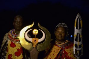 Enkang’ Ang’: Our Home is a depiction of the rich Maasai heritage through three-dimensional scans, virtual reality simulations, a series of photographs, and short film created by a cohort of Kenyan female artists who visited Twala Tenebo women’s village and documented their hosts’ lives, including Maasai homestead history and design; diet; rituals; objects; and effects of climate change. Enkang’ Ang’: Our Home serves as futuristic nexus for culture and invites the viewer to meet prominent Indigenous women figures like Enkoiboni, a matriarch leader and spiritual oracle. This exhibition was executively produced by Lead Artist Fellow Naitiemu Nyanjom, in collaboration with Shamina Rajab, Natasha Khanyola, Jess Olago, Kadesa Sarah, Laissa Malih, Achieng’ Otieno, Mercy Barno, Rosemary Wangari, Antonate Aiko, Lindsay Adhiambo Obath, Dayna Danger, Regan de Loggans, and Wambui Kinyua. Rose Nenini, Antonia Kihara, Adrian Jankowiak, Stephen Kimani, and Longino Muluka served as cultural advisors to the artists.